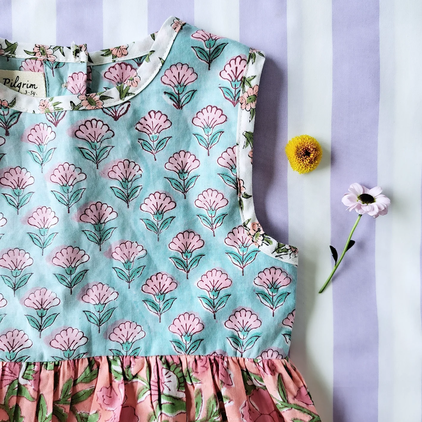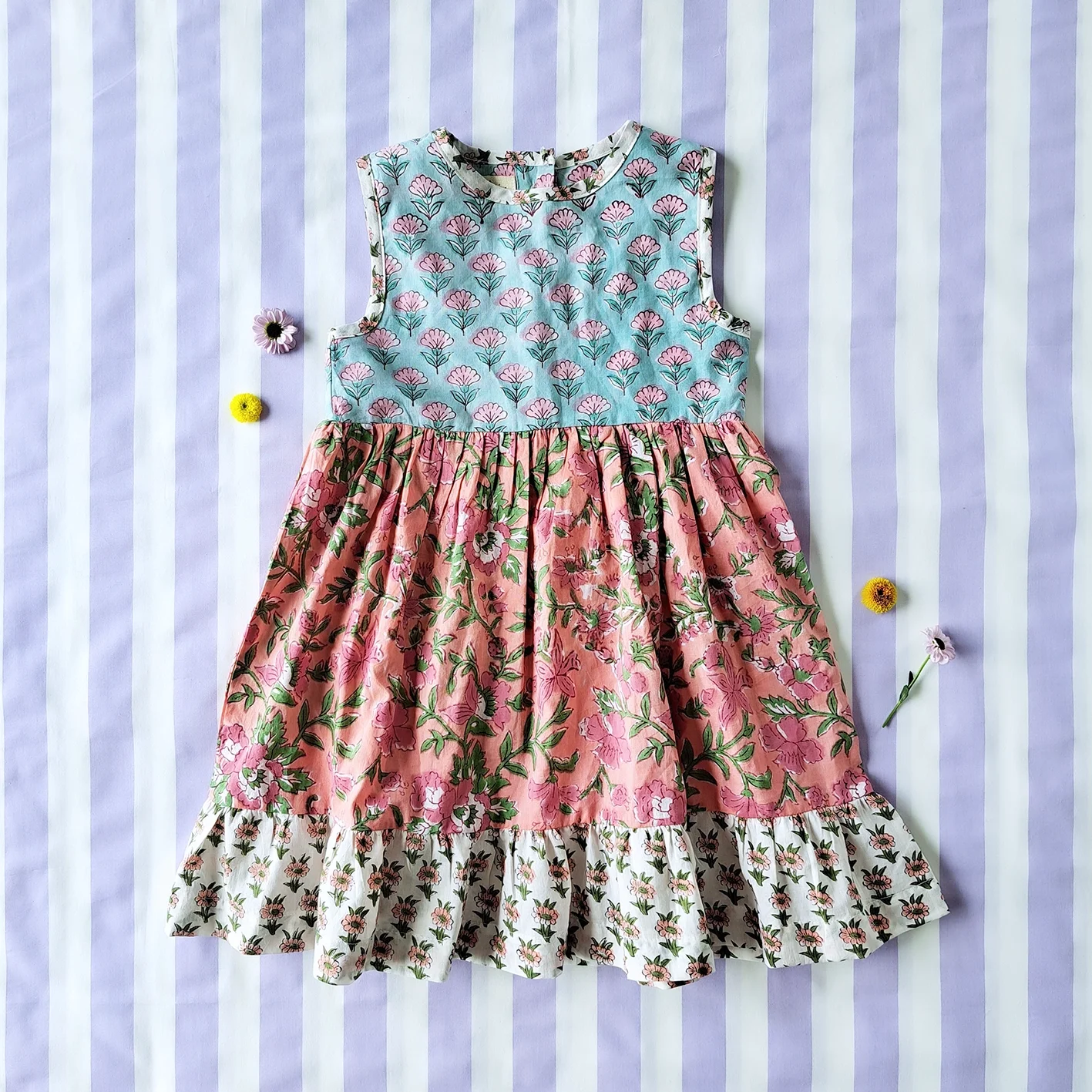 *LIMITED FABRICS -BUTTONS BACK CRAFTED BOHO DRESS 100% COTTON INDIA HAND BLOCK PRINTED