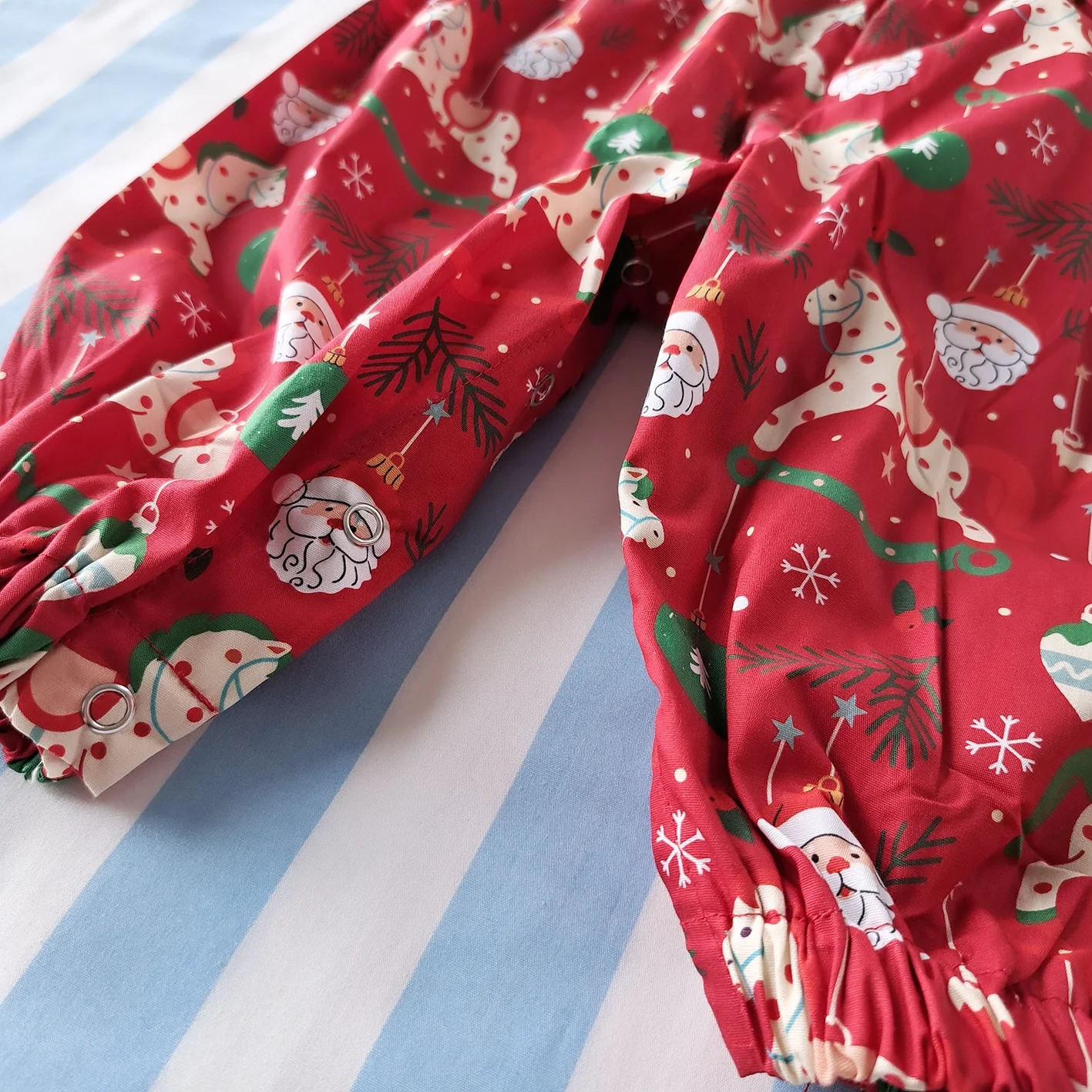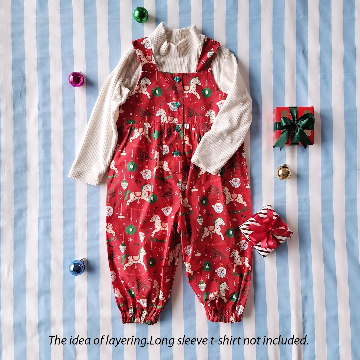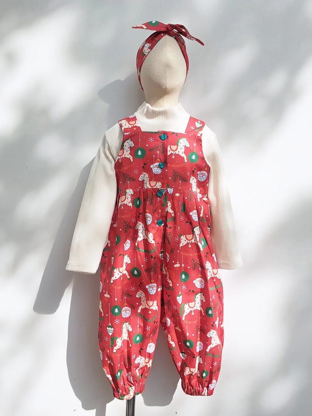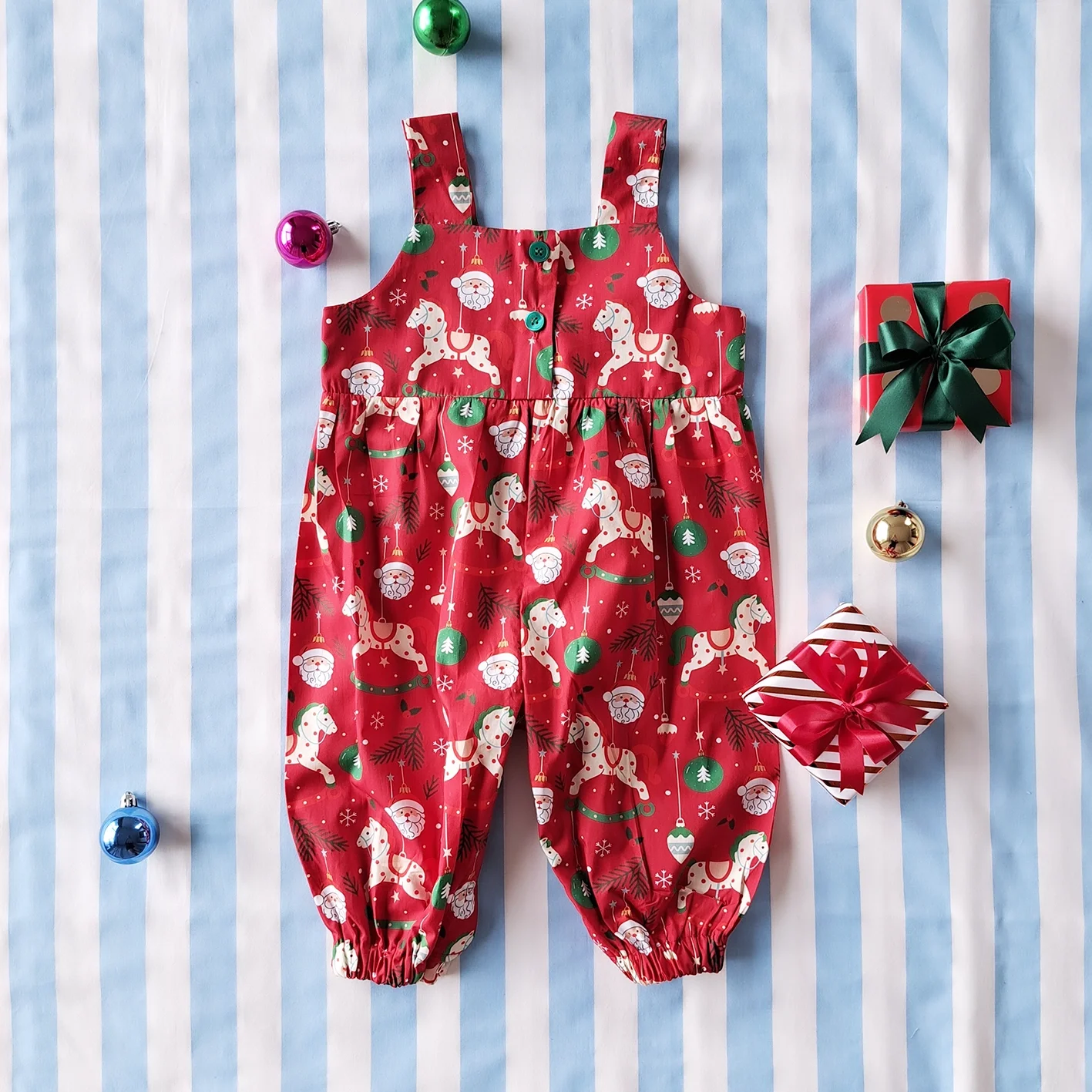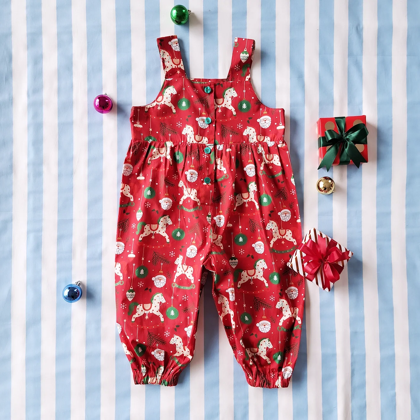 GIRLS OVERALL JUMPSUIT 100% PRINTED COTTON XMAS RED *PRE-ORDER SHIP OUT 7 DECEMBER