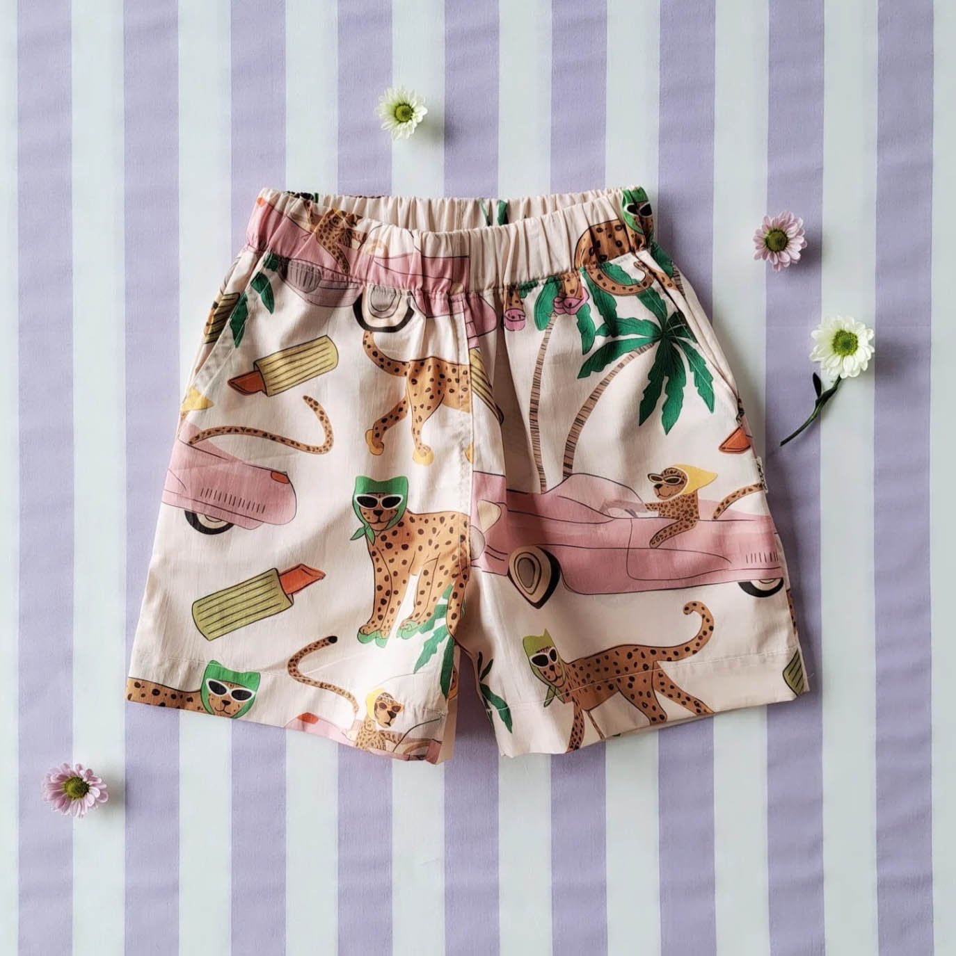 BOYS & GIRLS ELASTIC WAISTBAND SHORTS / 100% PRINTED COTTON JAGUAR