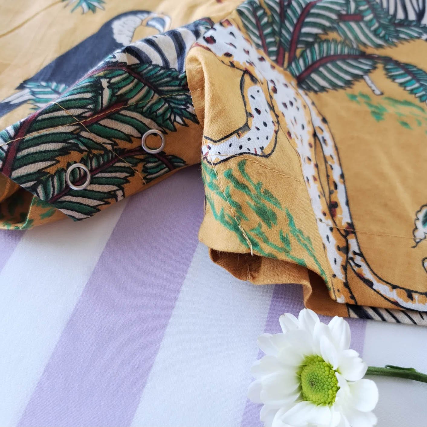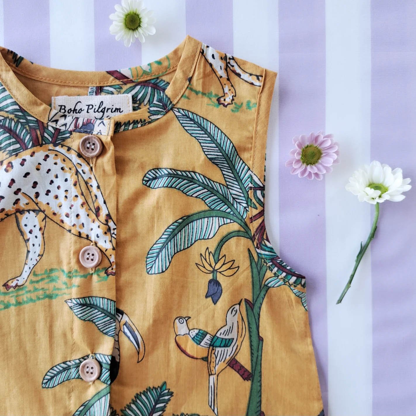 BOYS & GIRLS ROMPER 100% COTTON INDIAN HAND BLOCK PRINTED JUNGLE MUSTARD*予約注文は3月13日に発送されます * PRE-ORDER SHIP OUT 13 MARCH