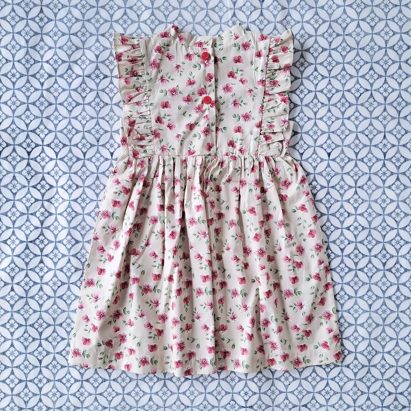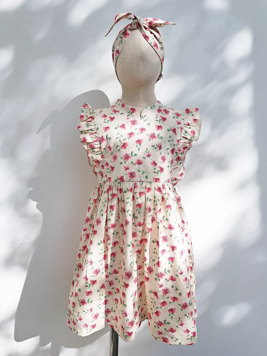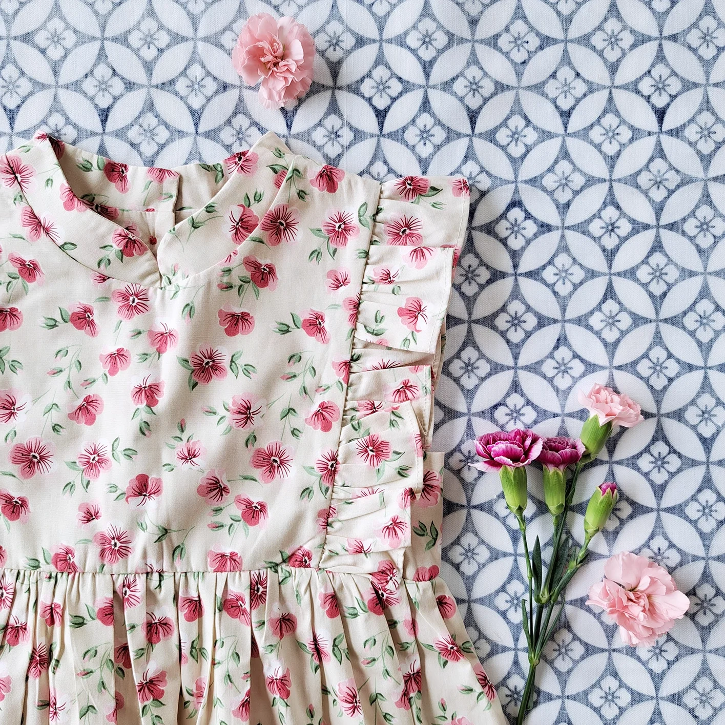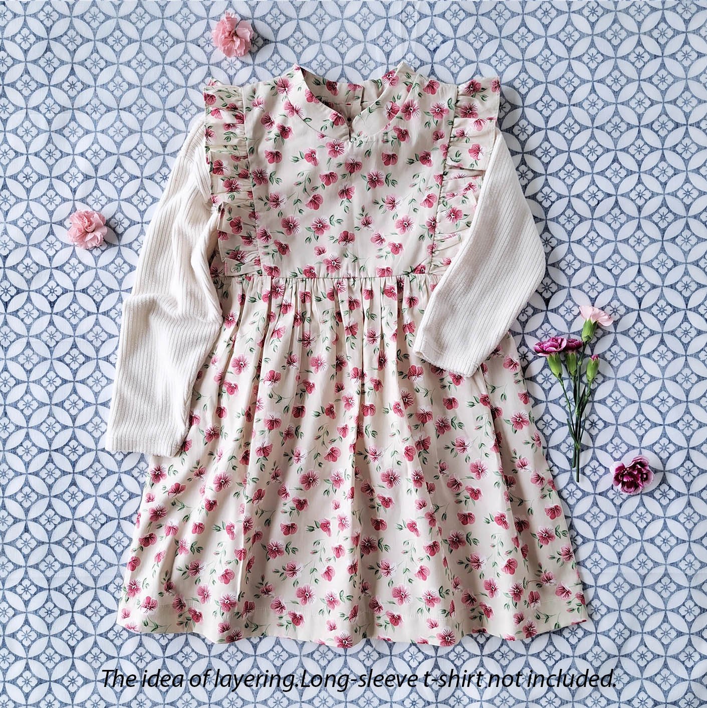 ชุดกระโปรงคอจีนกระดุมหลัง 100% ผ้าคอตตอน พิมพ์ลายดอกท้อ สีครีม *สินค้าสั่งจองล่วงหน้า ส่งสินค้าออก 7 ธันวาคม