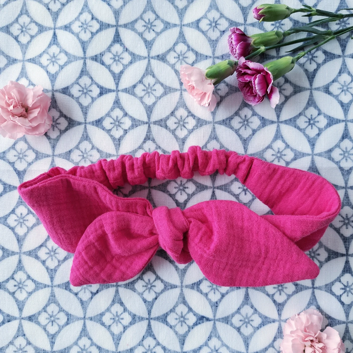 ที่คาดผมเด็ก และ ผู้ใหญ่ แบบยางยืดเฉพาะช่วงท้ายทอยด้านหลัง โบว์ใหญ่ ยางนิ่มไม่เจ็บศรีษะ 100 % ผ้าคอตตอนสาลูย่นเนื้อนิ่ม สีบานเย็น