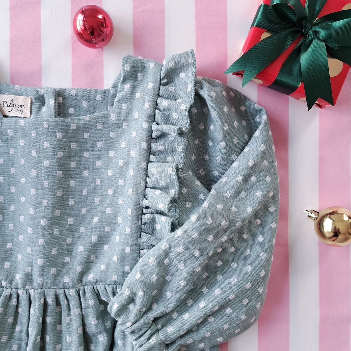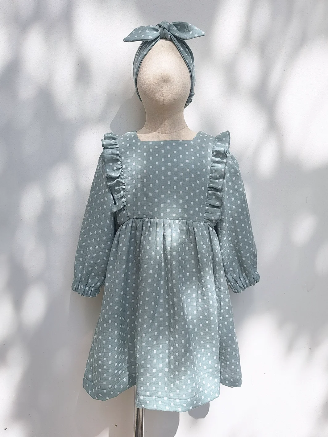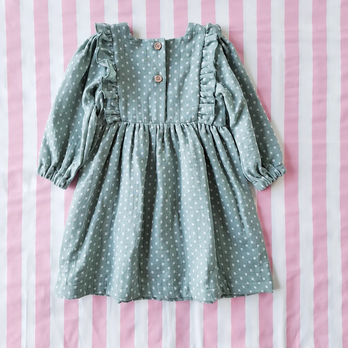 ชุดกระโปรงกระดุมหลัง แขนยาว 100 % คอตตอน เนื้อนิ่ม ทอสองชั้น สีเขียวมิ้นท์ลายจุด *สินค้าสั่งจองล่วงหน้า ส่งสินค้าออก 24 พฤศจิกายน