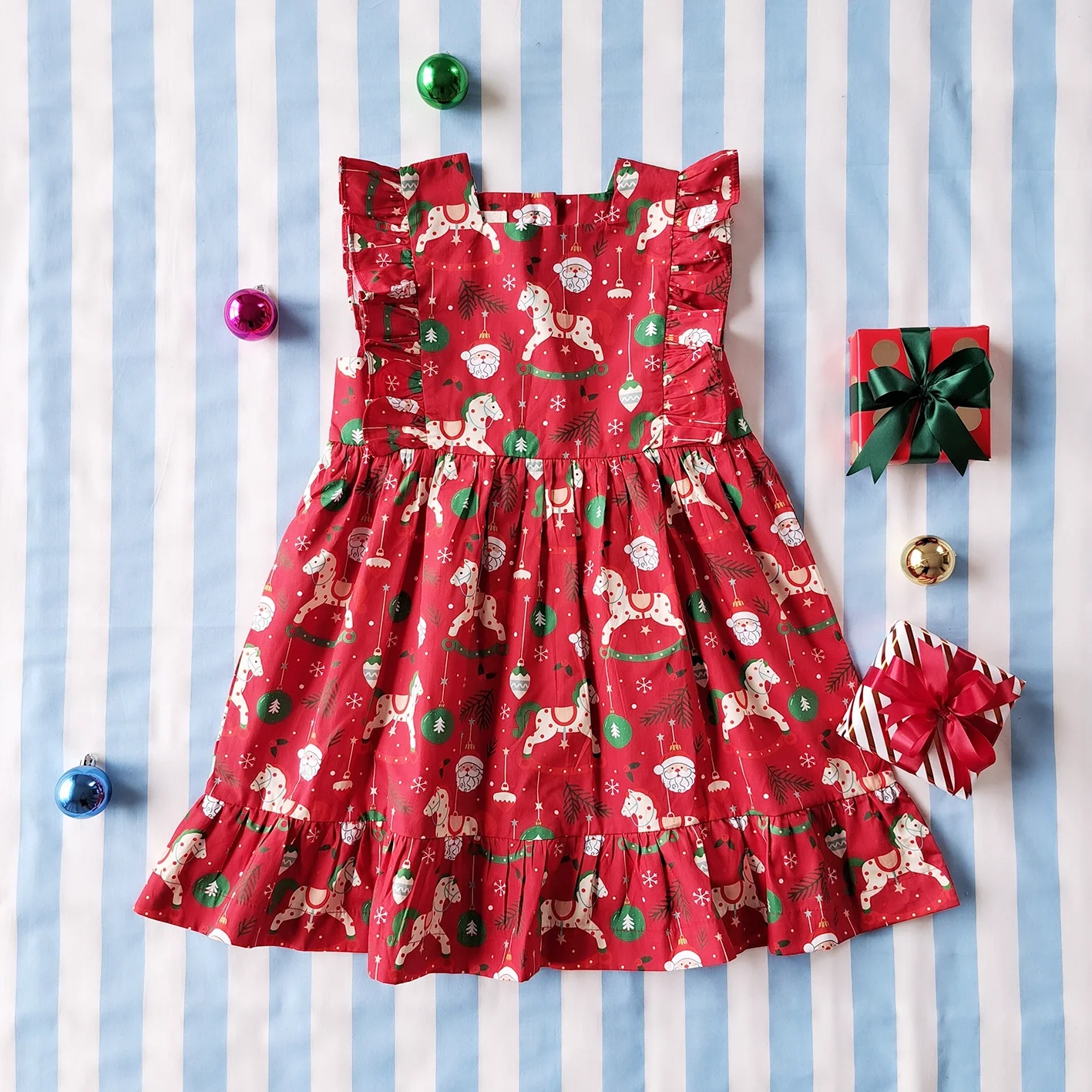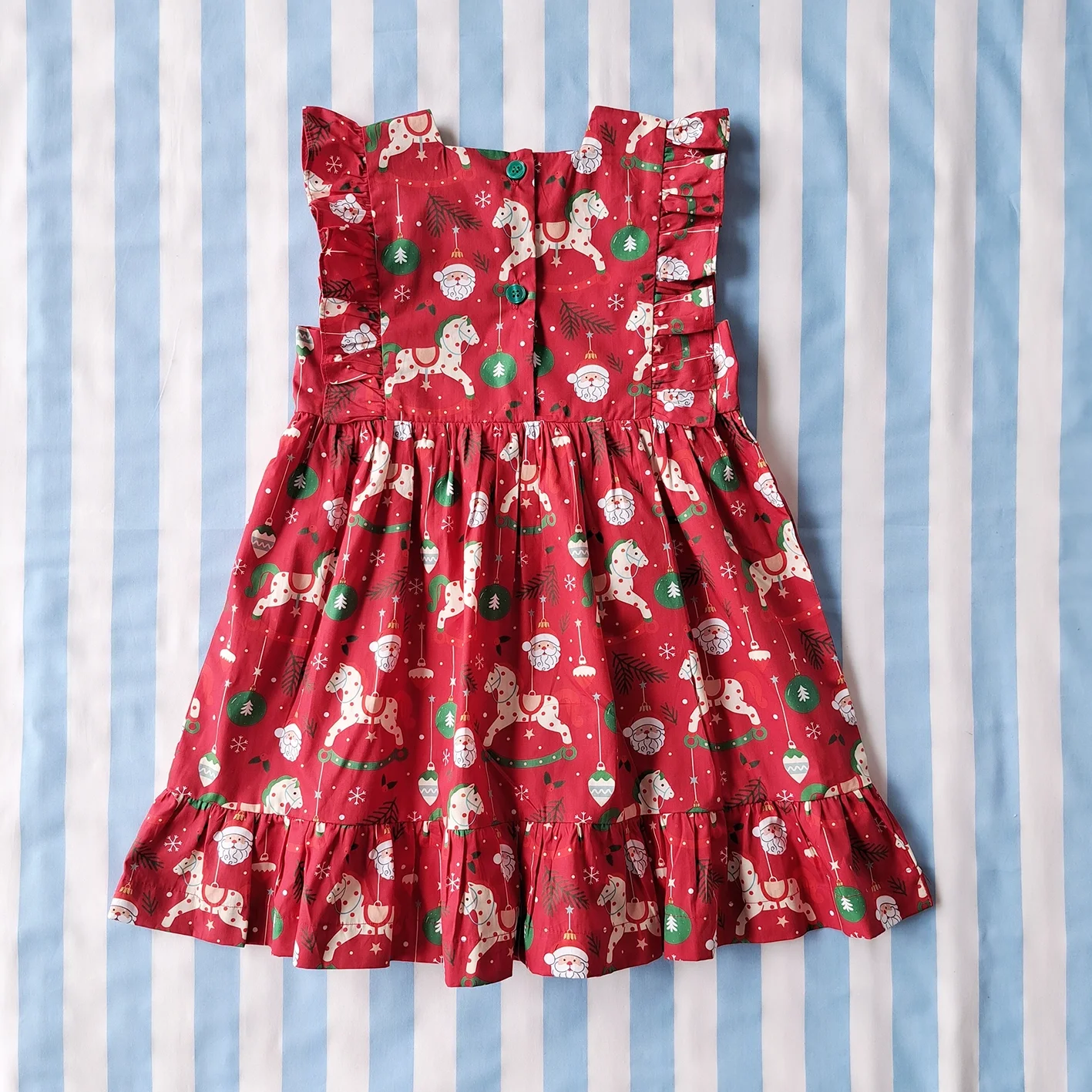ชุดกระโปรงกระดุมหลัง 100 % คอตตอนพิมพ์ลายคริสมาสต์สีแดง *สินค้าสั่งจองล่วงหน้า ส่งสินค้าออก 9 พฤศจิกายน