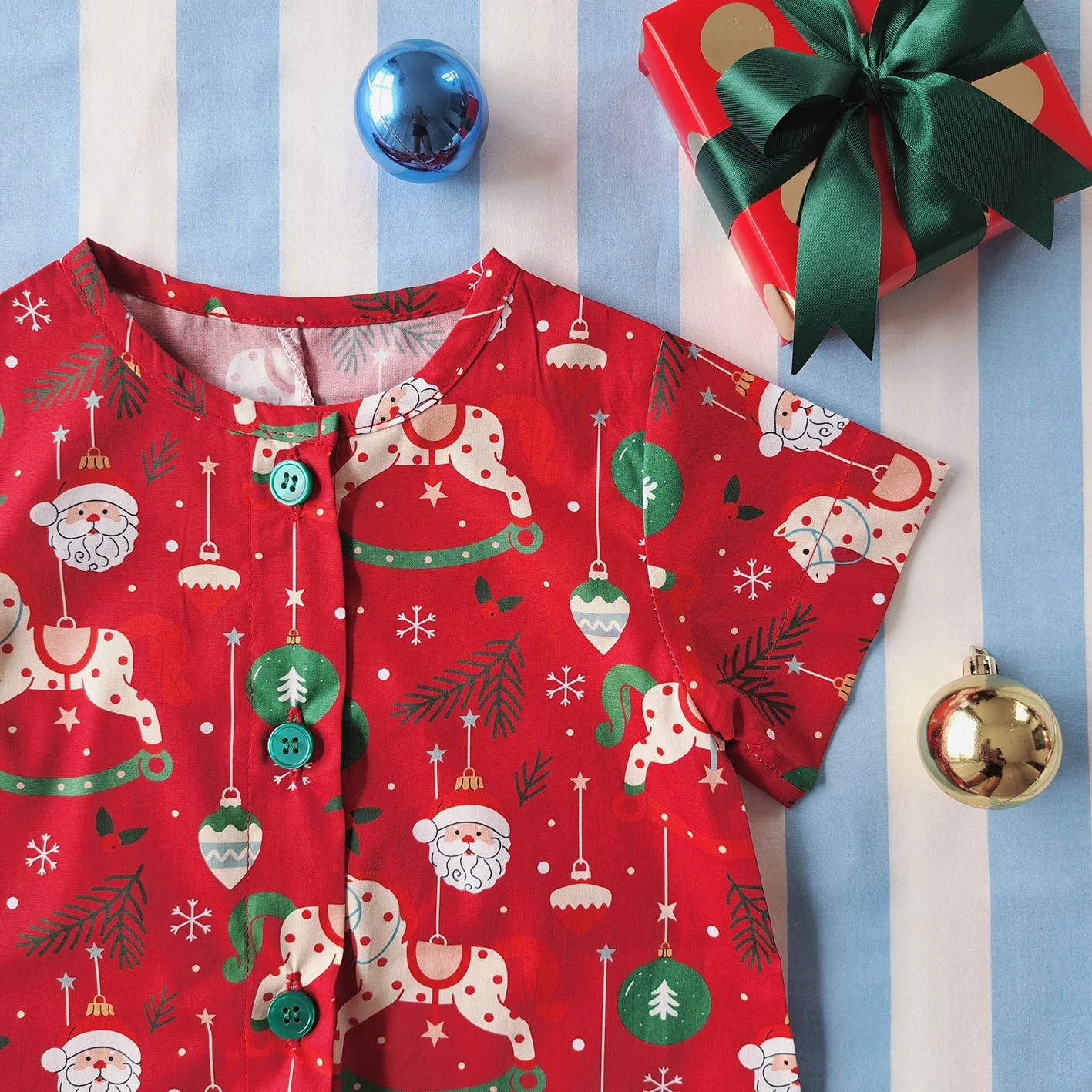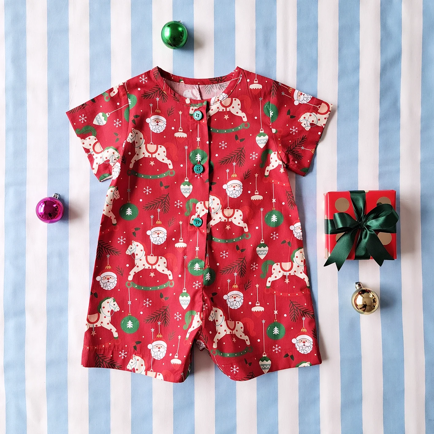 ชุดรอมเปอร์ กระดุมหน้า ใส่ได้ทั้งชายหญิง เปิดเป้าเปลี่ยนผ้าออ้อมได้ 100 % คอตตอนพิมพ์ลายคริสมาสต์สีแดง *สินค้าสั่งจองล่วงหน้า ส่งสินค้าออก 9 พฤศจิกายน