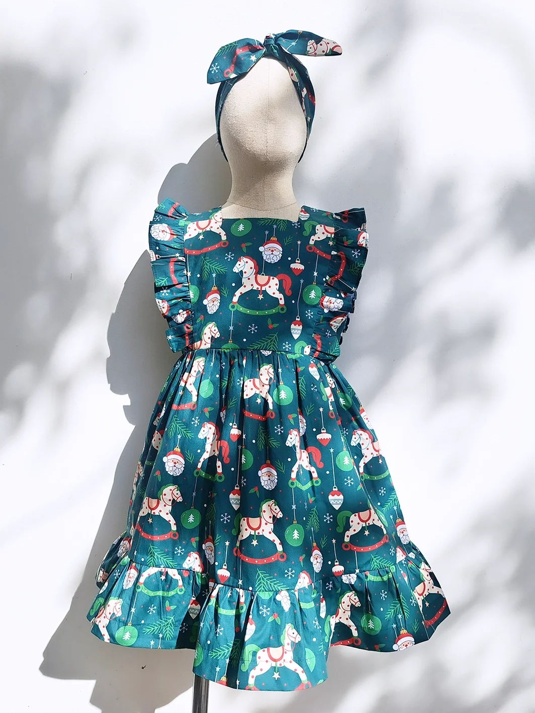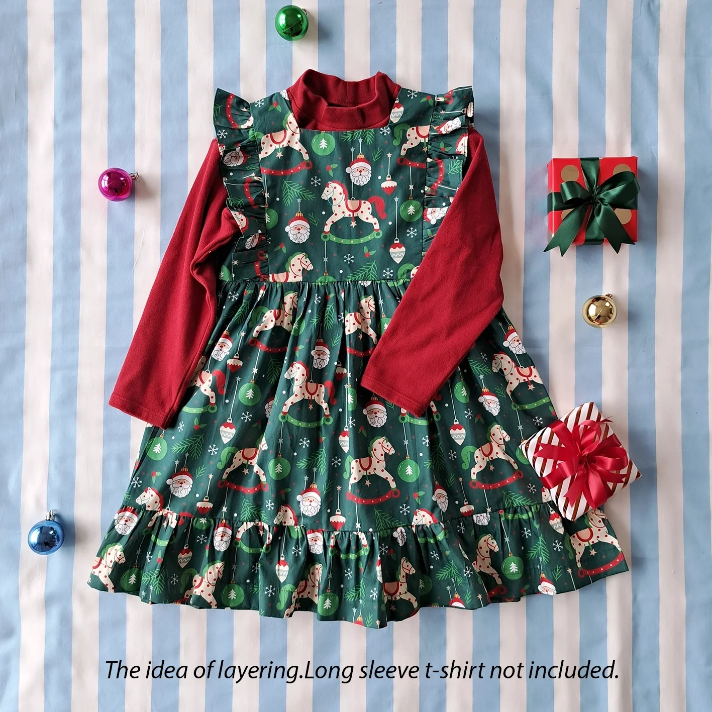 ชุดกระโปรงกระดุมหลัง 100 % คอตตอนพิมพ์ลายคริสมาสต์สีเขียว *สินค้าสั่งจองล่วงหน้า ส่งสินค้าออก 9 พฤศจิกายน