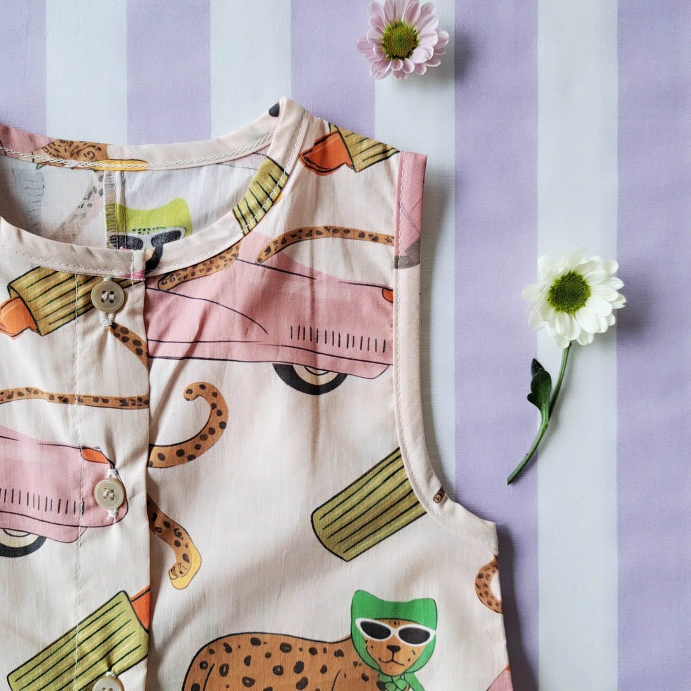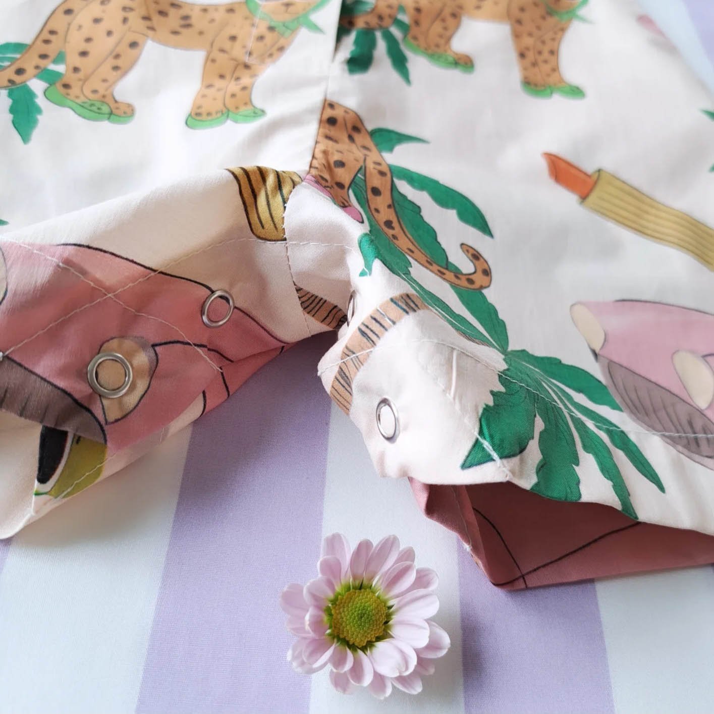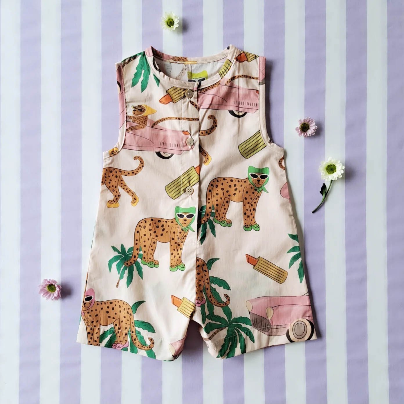 ชุดรอมเปอร์กระดุมหน้าใส่ได้ทั้งชายหญิง เปิดเป้าเปลี่ยนผ้าออ้อมได้ 100% ผ้าคอตตอนพิมพ์ลายเสือจากัวร์