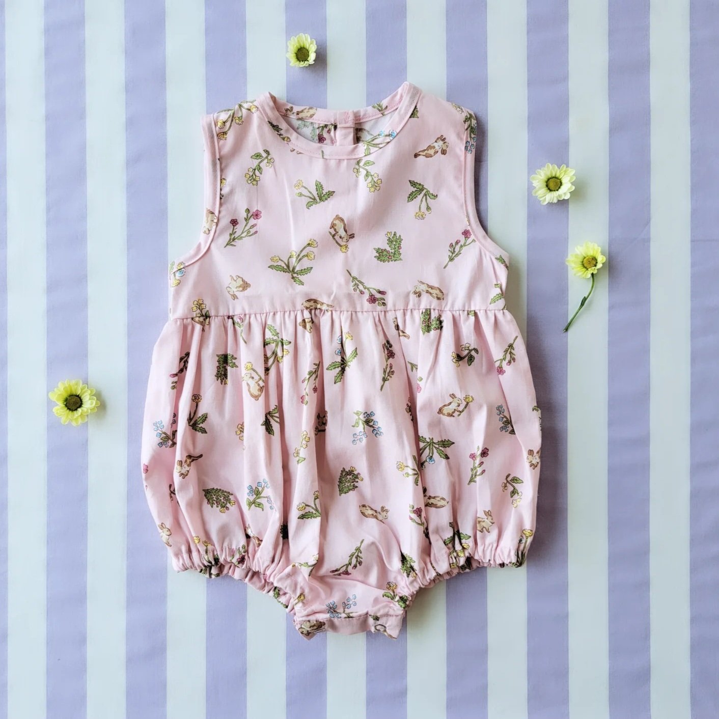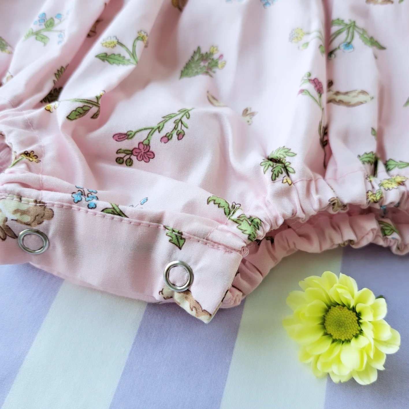 ชุดรอมเปอร์กระดุมหลัง เปิดเป้าเปลี่ยนผ้าออ้อมได้ 100% คอตตอนพิมพ์ลายกระต่ายสีชมพู